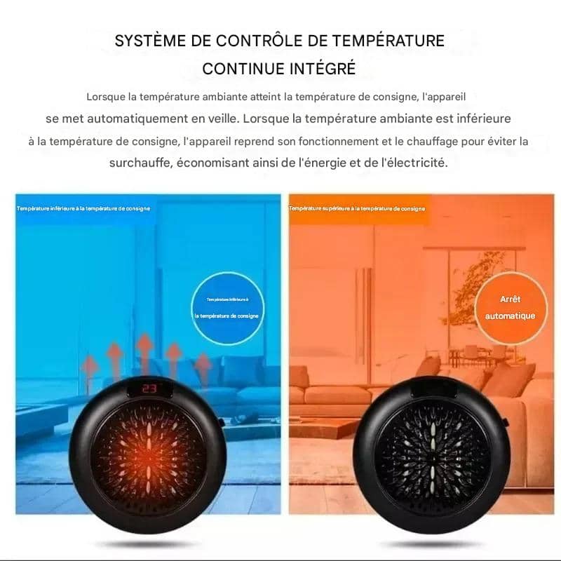 Avec une puissance optimisée de 900W, ce mini chauffage chauffe vite tout en limitant la consommation. Son système de protection contre la surchauffe vous garantit une utilisation sûre, et son fonctionnement silencieux le rend parfait pour la nuit. Une solution économique, sécurisée et efficace pour rester au chaud tout l’hiver.